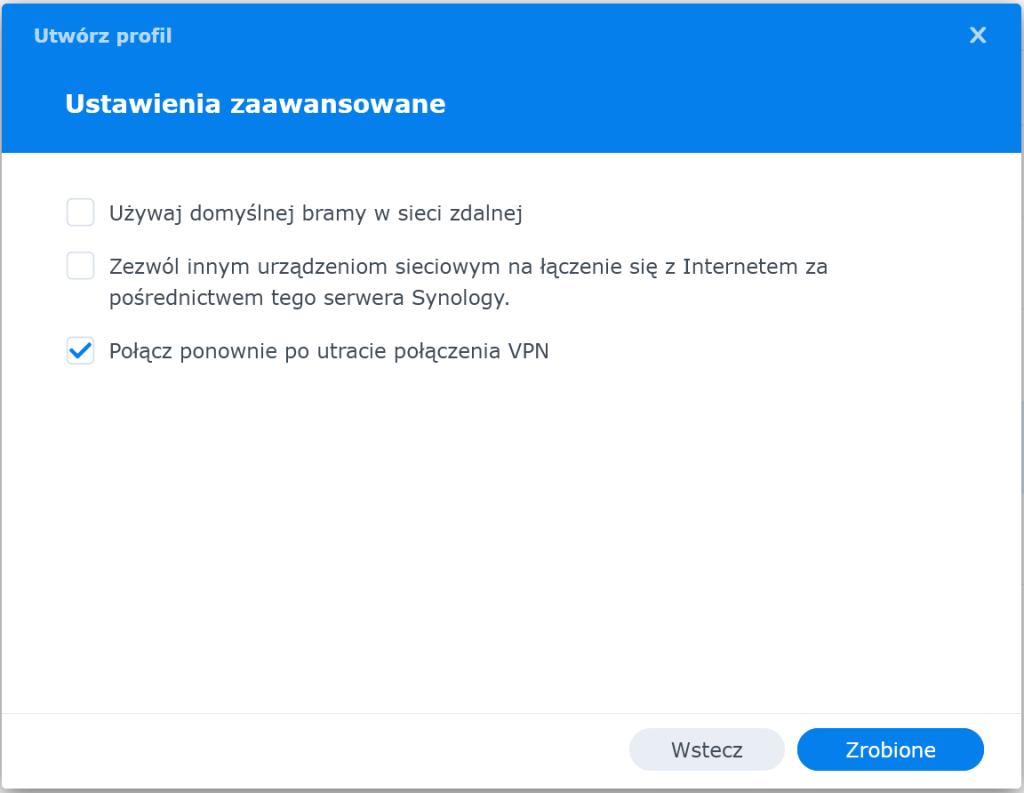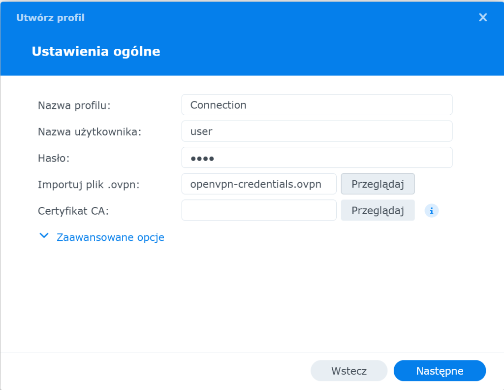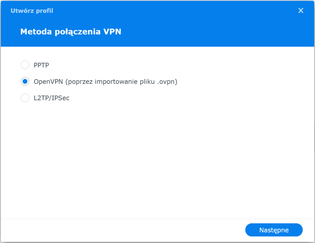 Tworzenie profilu OpenVPN w Synology DSM: